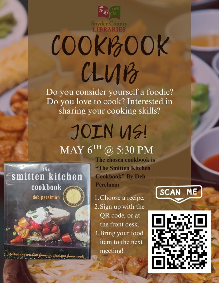 Cookbook ClubPost author:Justin EmerlePost published:December 15, 2025Post category:UncategorizedPost comments:0 CommentsThe chosen cookbook for May is “The Smitten Kitchen Cookbook” By Deb PerelmanCome to the Rudy Gelnett library to pick your own recipe after signing up! Click Here to Sign Up! You Might Also Like Thursday Evening Bookclub April 23, 2025 Tuesday Morning Book Club April 23, 2025 New Mobile Hotspots September 30, 2025Leave a Reply Cancel replyCommentEnter your name or username to commentEnter your email address to commentEnter your website URL (optional) Save my name, email, and website in this browser for the next time I comment. Δ